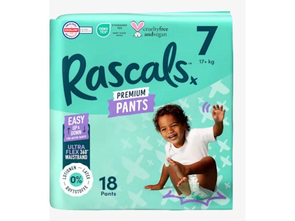 Rascals PANTS prémiové natahovací plenky 7 (+ 17 kg), 18 ks