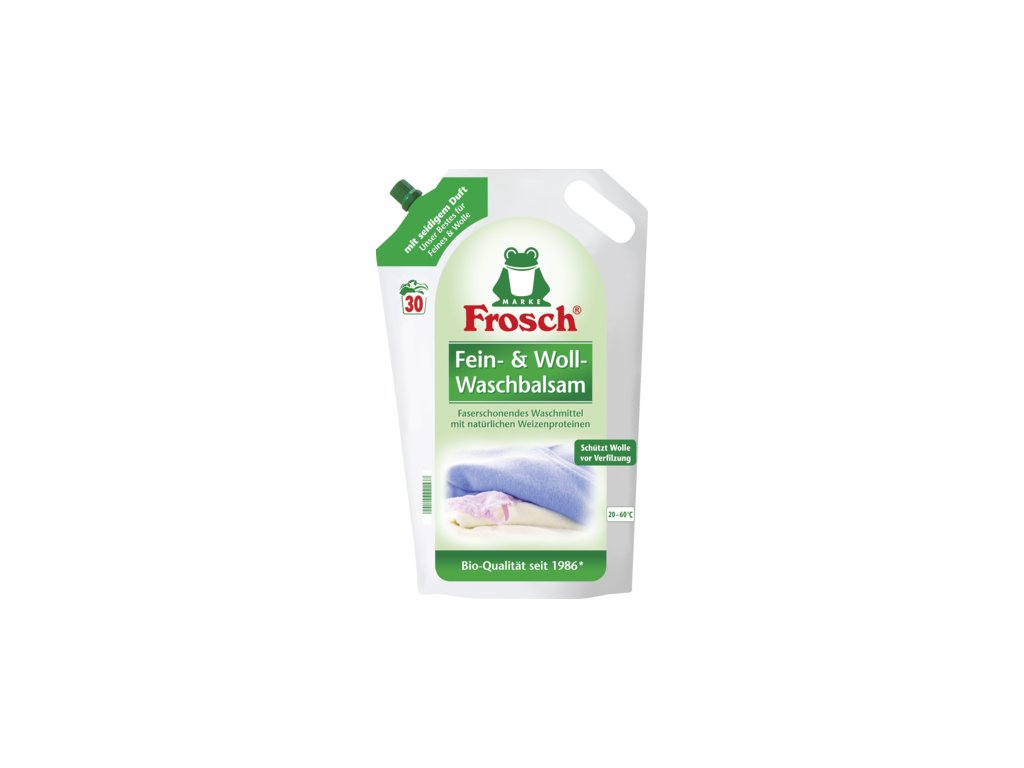 Initiative Frosch v devíti bodech. Lehce odbouratelné látky. Vynikající ochrana životního prostředí, bez škodlivých chemikálií. redukované balení. Bez živočišných produktů. Určeno pro jemné prádlo, např. dámské, vyrobené např. z hedvábí, vlny, s prachovým peřím apod. 20 mililitrů postačí na jeden kg prádla. Vhodné k ručnímu praní: 40 mililitrů na 10 litrů vody. Teplota prací vody 20 - 60°C.