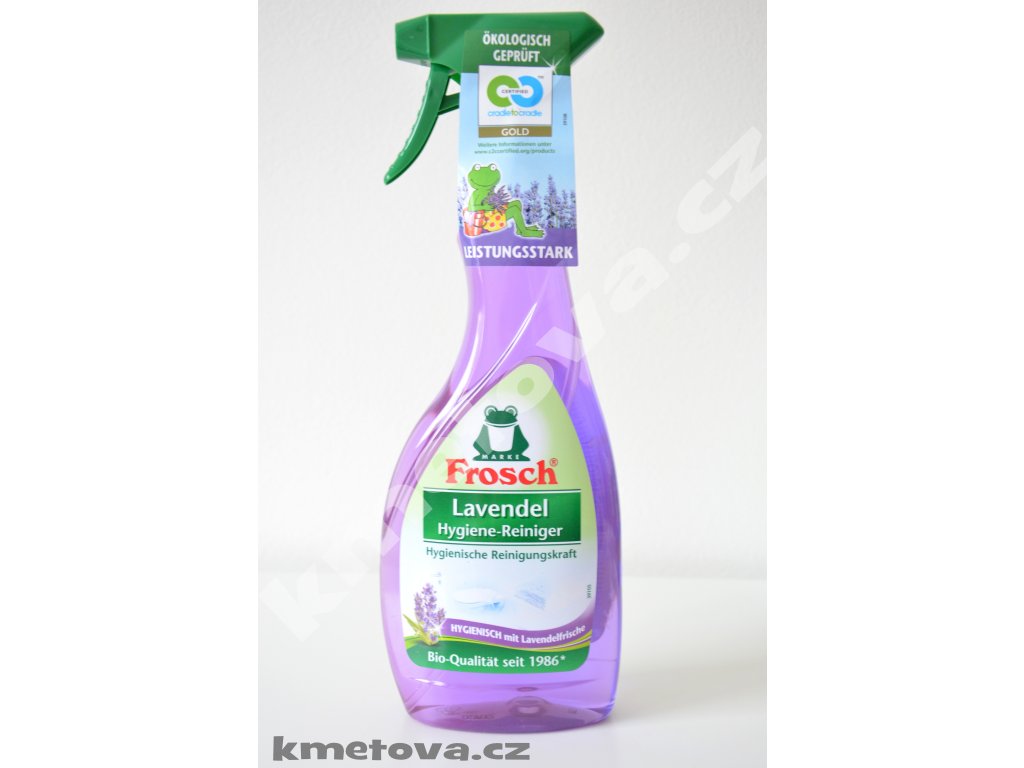 Čistič pro velmi účinné čištění koupelen a WC. Dezinfikuje, odstraňuje špínu, zbytky mýdla, skvrny a vápník. Příjemně voní po levanduli. Dermatologicky testováno. Méně než 5% anionických tenzidů. Bez aromatických látek. Bio kvalita Frosch v devíti bodech. Environmentálně nezatěžující, beze stop živočišných produktů. Ochrana životního prostředí "Initiative-Frosch.de". Zlatý certifikát "Cradle to Cradle"